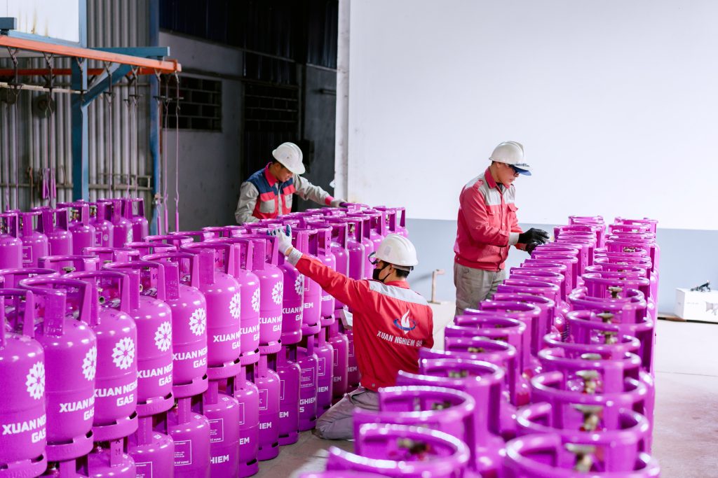 Bình gas dân dụng loại 12kg, bình gas công nghiệp 30kg, 45kg mang thương hiệu Xuân Nghiêm Gas và Petrovietnam Gas. Các vật tư an toàn phòng cháy chữa cháy (PCCN).